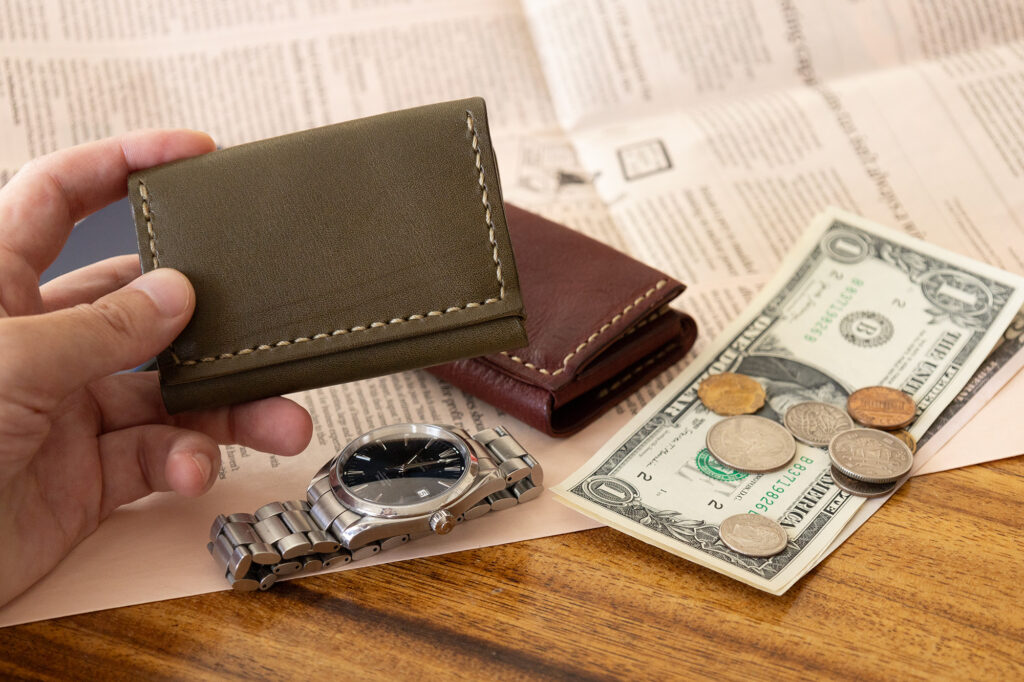 当店では主に栃木レザーの「ヴォーノオイル」と「プルアップ」というオイル質の高いしなやかな革を採用しています。また、直接問屋さんに足を運び、様々はヌメ革を目で見て、触って、本当に良いと思ったものをその場で仕入れています。入荷が不安定なWICKETT&CRAIG社の製品も取扱を始めました。