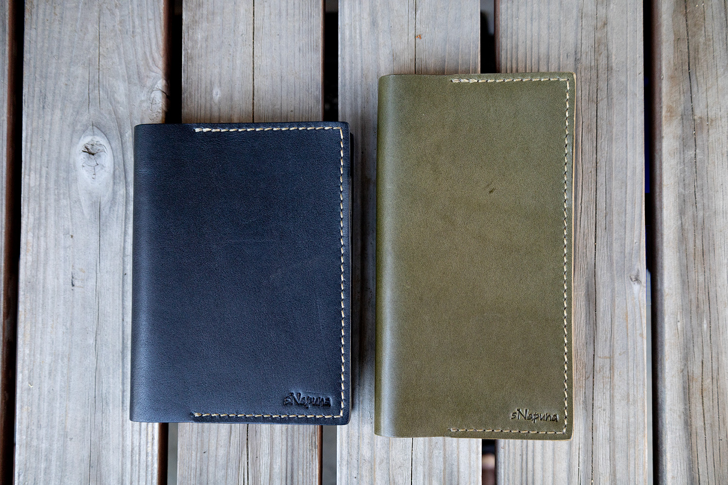 「軽い」けどオイルレザーならではの深い色味が高級感を際立たせています。断裁面や革床のコバもしっかり磨いていますので手間をしっかりかけた手抜きなしの製品です。使い続けると角に丸みが帯び、味のあるカバーに仕上がっていきます。